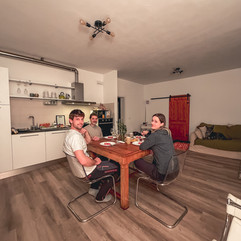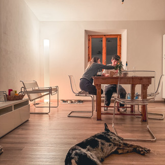 Organizzare il pernottamento nel van logisticamente sarebbe stato impossibile, e per questo abbiamo scelto di soggiornare in un appartamento. Dopo varie ricerche, ho trovato su airb&b un appartamento che sembrava davvero bello. Ho contattato l'host per sapere se erano accettati due cani di taglia media e da subito Giacomo si è dimostrato amichevole e davvero disponibile: al nostro arrivo ci ha accolti insieme alla moglie Simona con un cesto di benvenuto contenente tisane, spezie ma anche delle casse per la musica, un kit di pronto soccorso e delle birre artigianali in frigo. Per Luna e Maki ci ha preparato delle ceste, le ciotole e degli snack. Il Podere l'Assunta è situato a Poggiolo, in provincia di Siena, in una zona collinare e immersa nella natura. L'appartamento è spazioso, con due camere e un salone openspace con cucina. La parte che mi è piaciuta di più però è l'esterno: una terrazza con sdraio a dondolo, un'amaca e una splendida vista sulle colline circostanti.